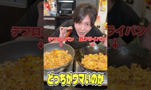 鉄鍋で焼いたチャーハンとテフロンフライパンで焼いたチャーハン、どっちがウマいのかガチで検証します #shorts #リュウジ #炒飯 #フライパン #検証 #バズレシピ
