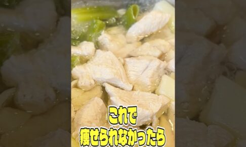 鶏むね肉350g、長ネギ120g、水300cc、にんにく15g、塩小さじ1/2を煮て本物のポン酢と塩で食う